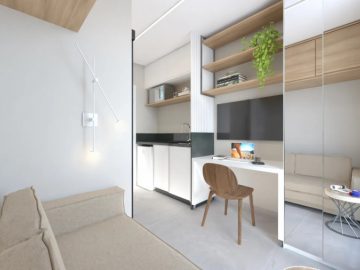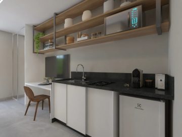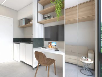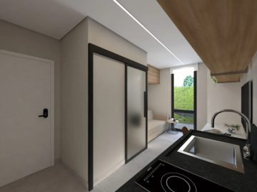 Condomínio de Studios compactos no bairro do Campo Comprido, na cidade de Curitiba – PR. Contendo 18 unidades de 10 a 22 m² privativos, com e sem sacada. Vagas de garagem rotativas para 4 veículos. Contendo as seguintes áreas comuns: Bicicletário, garagens, espaço gourmet com churrasqueira, lavanderia comunitária, terraço com área de descanso.